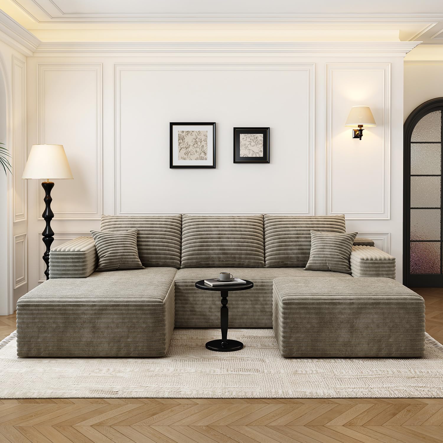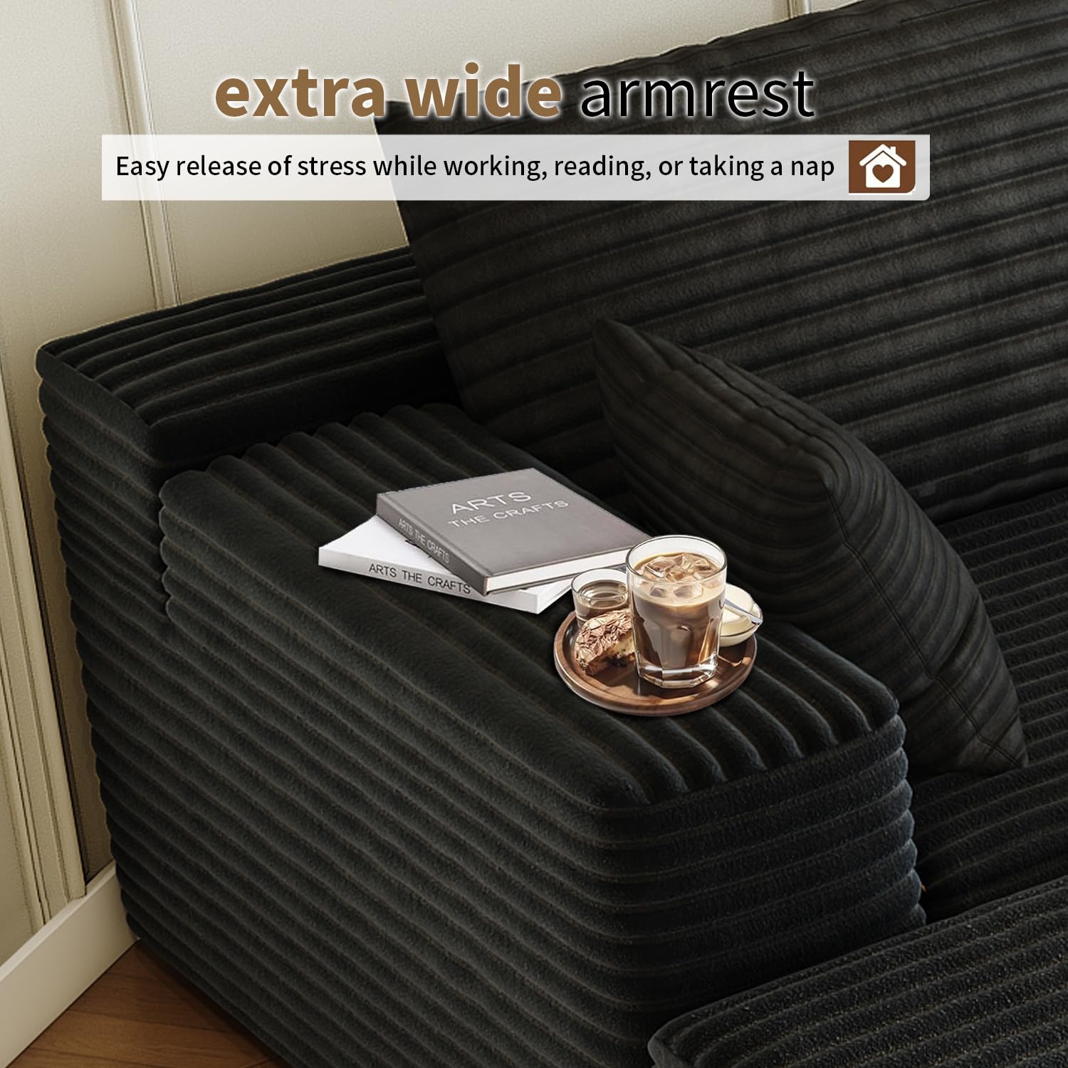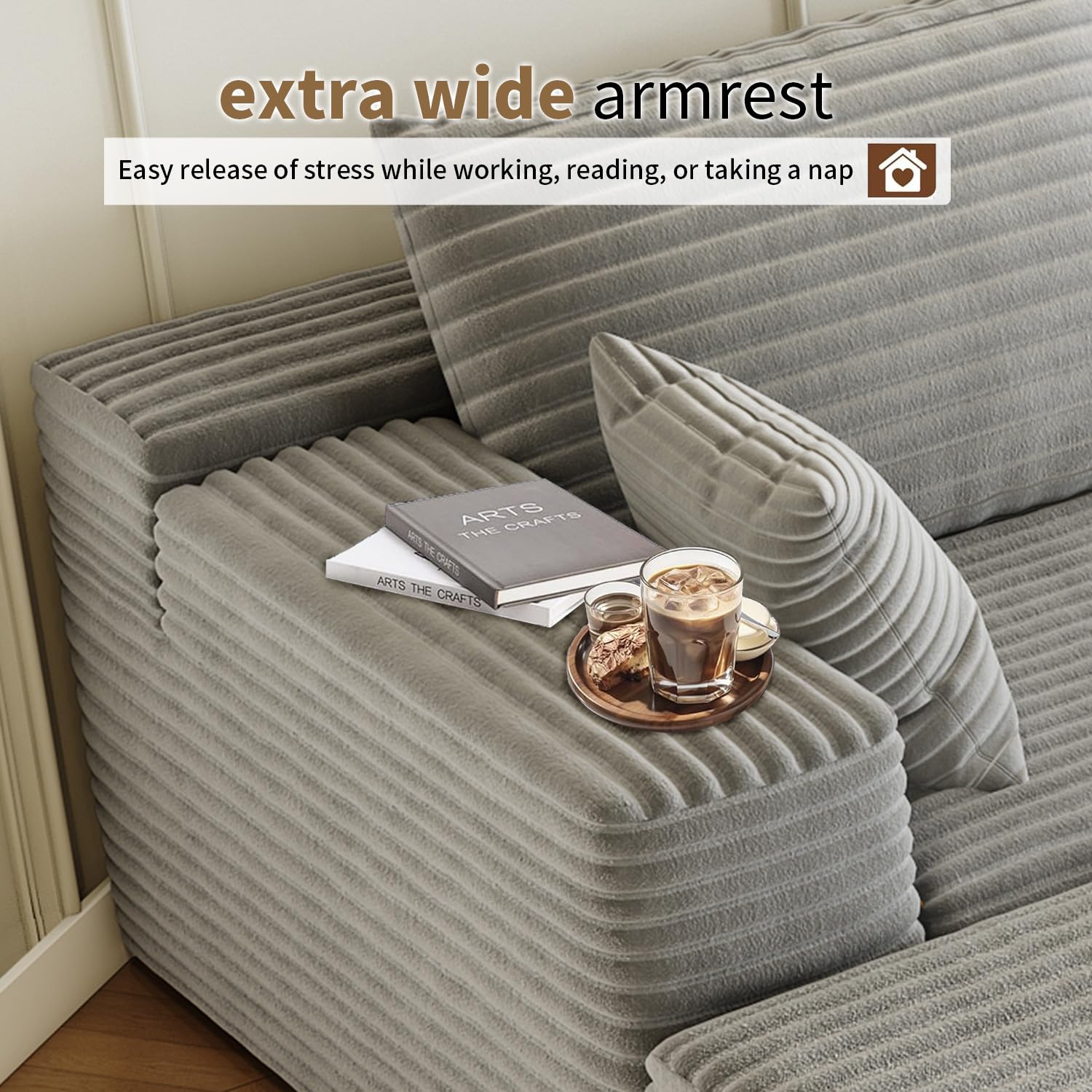 - Modular Sectional Sofa:This L-shaped sectional sofa featuring a sleek design, clean lines, and high-quality plush corduroy Fabric,This minimalist L-shaped sectional set maximizes space when placed against a wall,this corner sofa effortlessly adds a timeless and sophisticated touch to your home. Designed to be the focal point of attention, it's an ideal choice for elevating the ambiance of living rooms, apartments, and bedrooms.