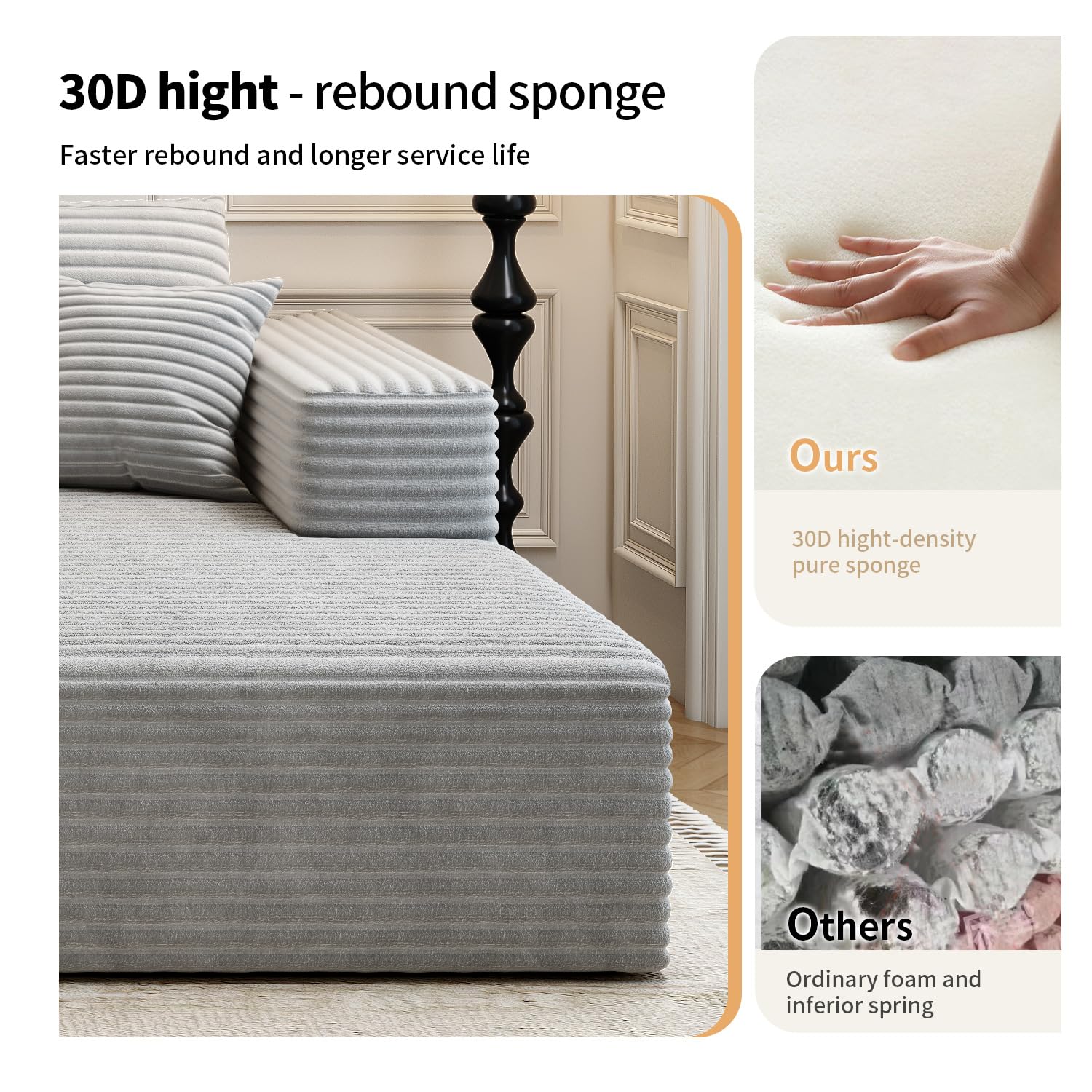 - No Assembly Required:Say goodbye to furniture assembly nightmares! our minimalist sofas require no tedious assembly to experience instant comfort. Simply unwrap and relax, no tools required. In just a few moments, your comfy cloud couch is ready to be put to use and reach a state of total luxury within 72 hours.