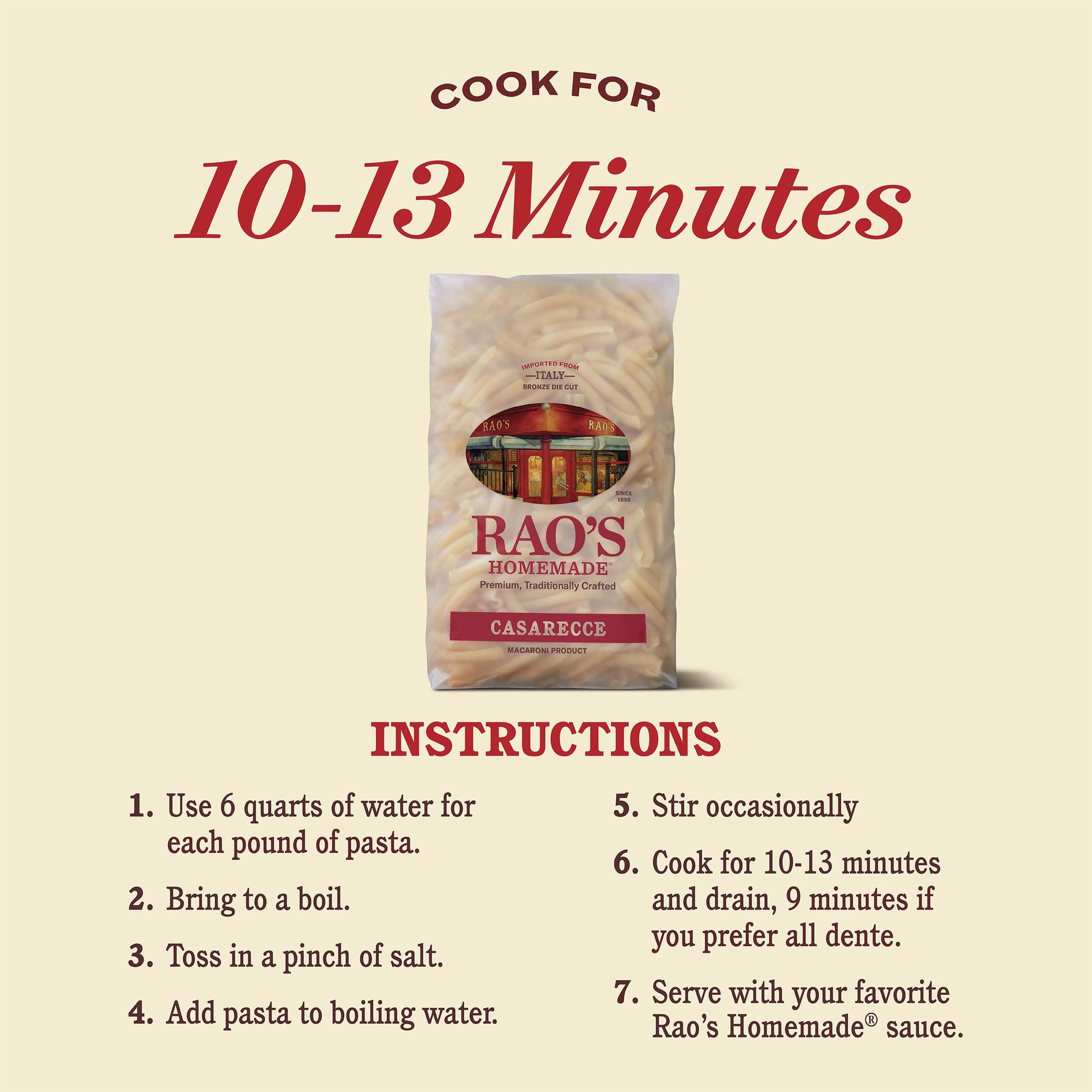 - ITALIAN TRADITIONS: Our dried pastas use traditional bronze die cuts creating the perfect grooves to hold sauce. Try with any of our delicious Rao's Homemade Sauces!