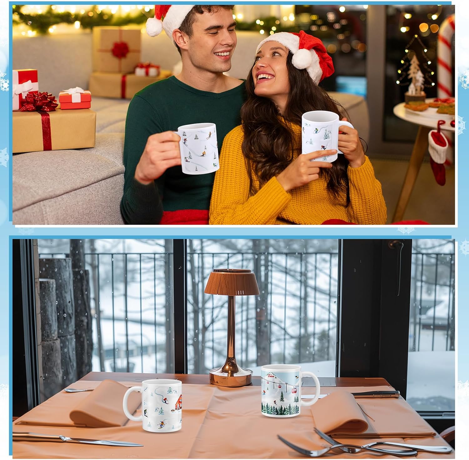 - Fun Festive Designs to Brighten Your Day: add a splash of winter magic to your kitchen or workspace! Each mug in this novelty cup set features a playful, artistic design centered around skiing and mountain adventures; These mugs are especially great for the holiday season, enhancing Christmas decoration or bringing cozy vibes to winter mornings with family and friends